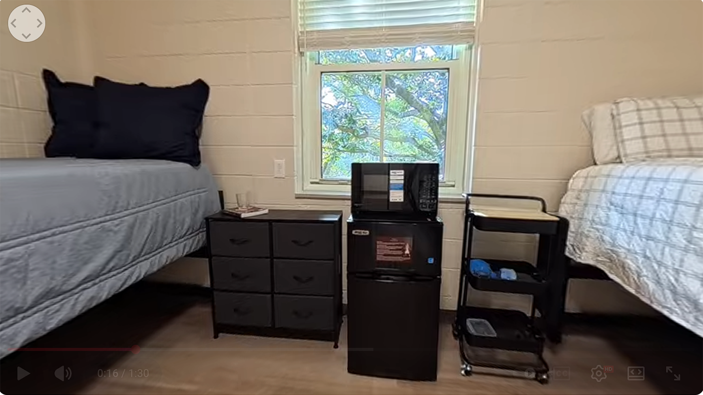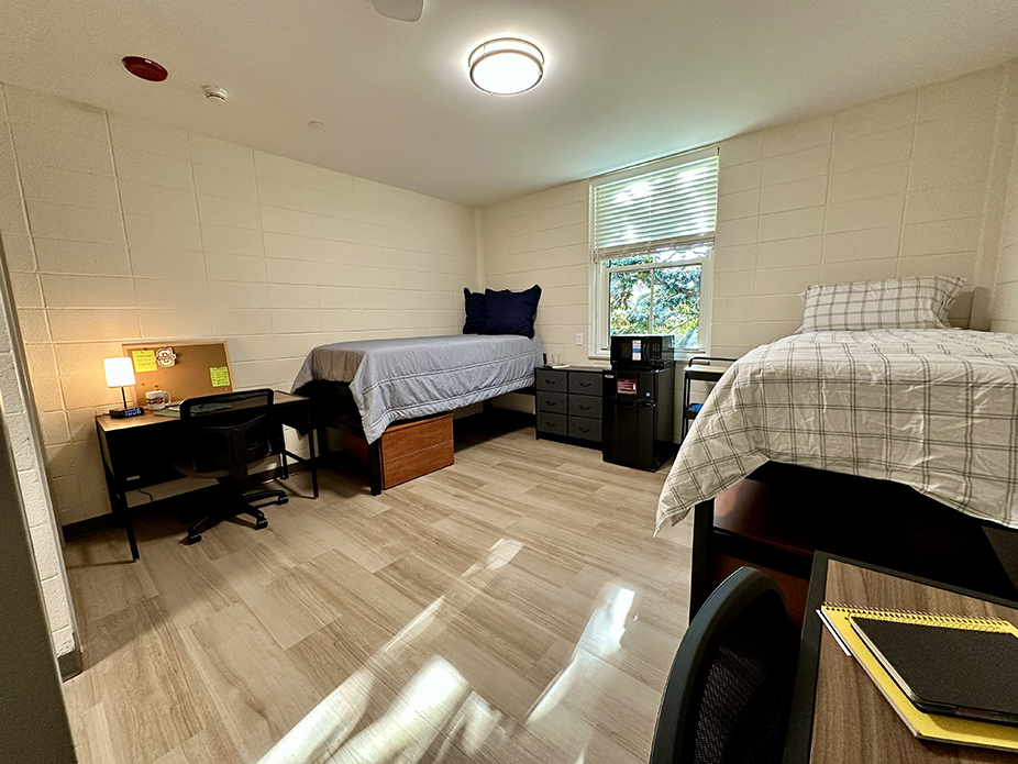 Constructed in 1963 and renovated in 2025, Buist is air conditioned and has free high-speed Wi-Fi. Students share private floor bathrooms that are cleaned by our custodial team. (Read more about them under Amenities.) Free washers and dryers are on each floor. The building also features furnished lounges with kitchenettes on each floor and a large lounge and full kitchen on the ground level.