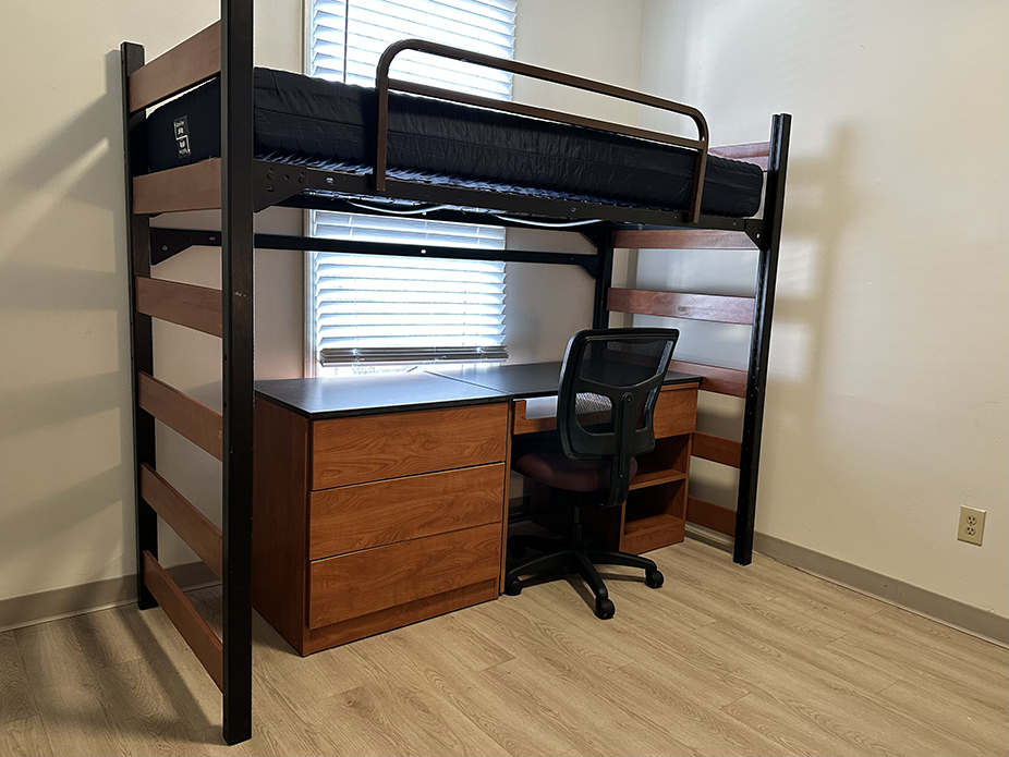 - Twin extra-long lofted bed (double rooms): 36” W x 85” L. Mattresses accept only twin extra-long sheets. The headboard and footboard act as ladders for the bed. Each lofted bed is equipped with a guardrail for safety.
