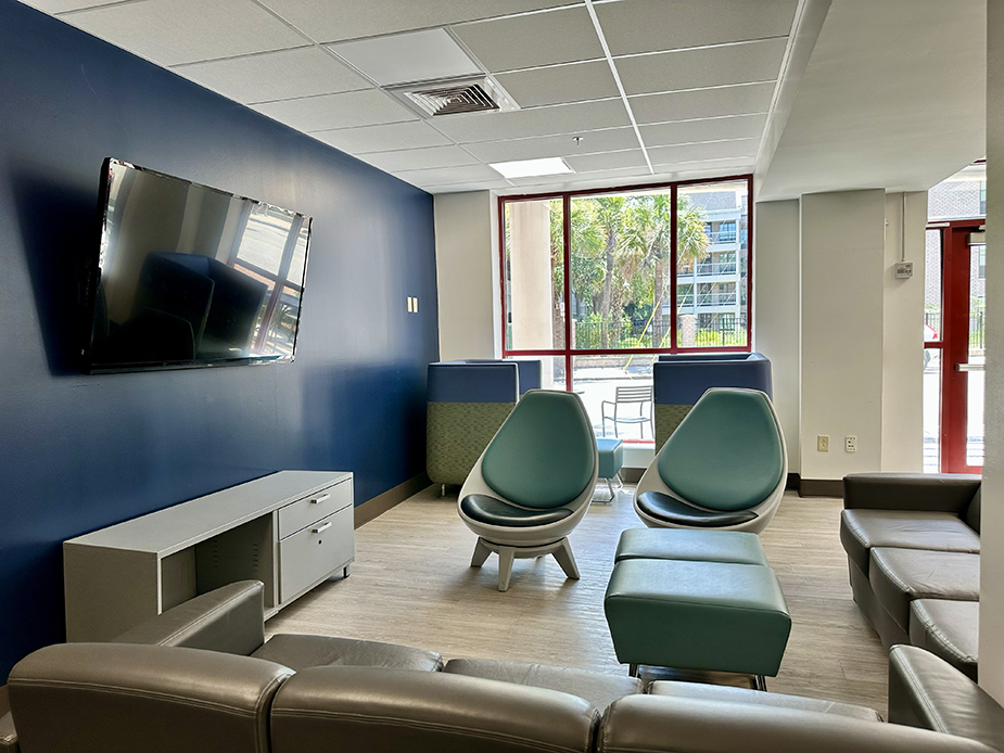 Marcia Kelly McAlister Hall is a six-story building conveniently located above Einstein Bros. Bagels at the corner of St. Philip and Vanderhorst streets. McAlister Hall has elevator access.
