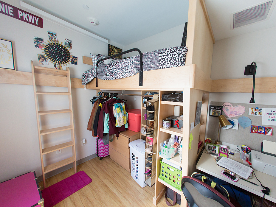 - Twin extra-long bed: Beds are in a stationary lofted position with a ladder and guardrail and cannot be adjusted. The clearance from the floor to the underside of the bed is about 64”. Mattresses accept only twin extra-long sheets.