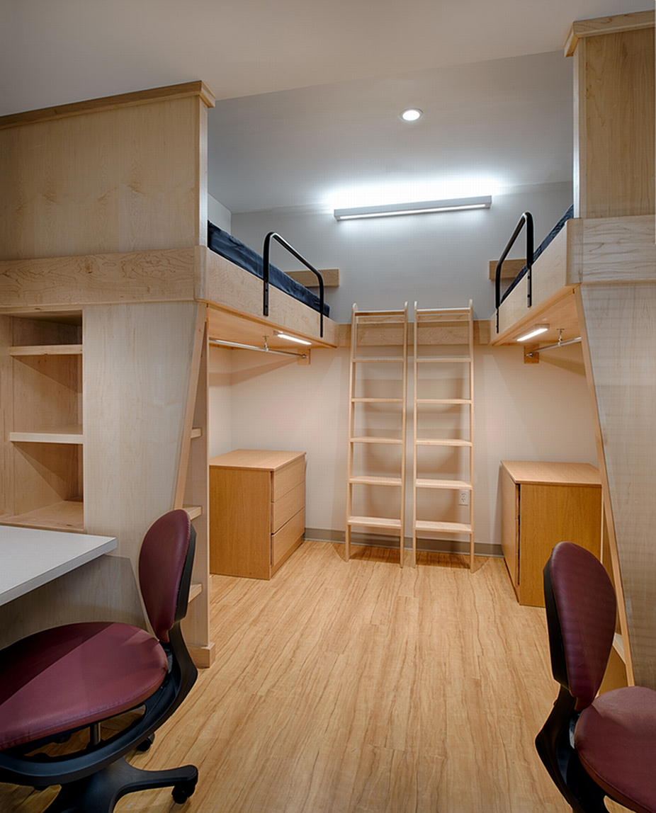 - Typical rooms do not have closets or wardrobes. An open hanging space that is 36” wide is located in the 64” high open space under each bed.