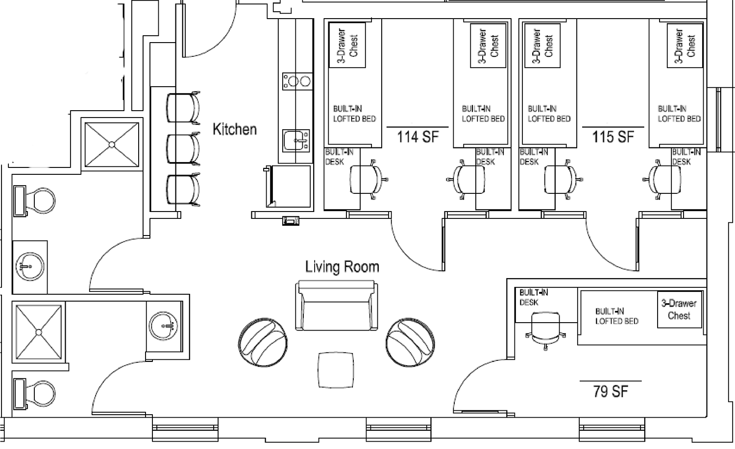 Read below for room amenities, dimensions, furniture provided and floor plans.