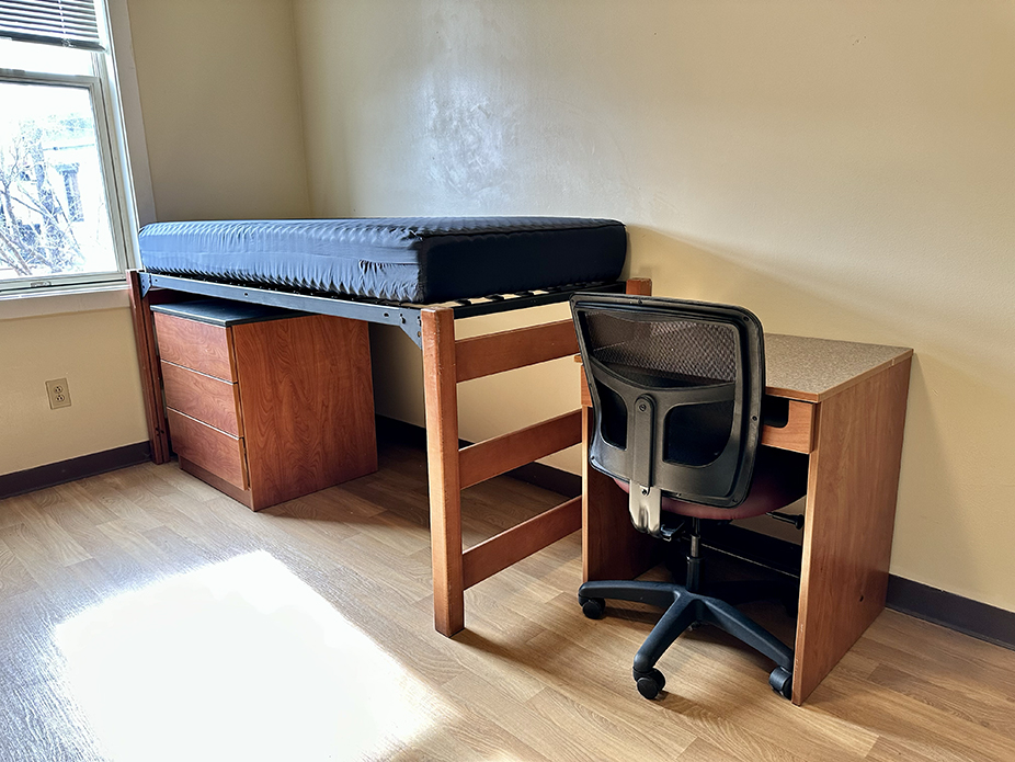 - Full-size bed (private rooms): 75” long x 54” wide. Standard full-size sheets required.