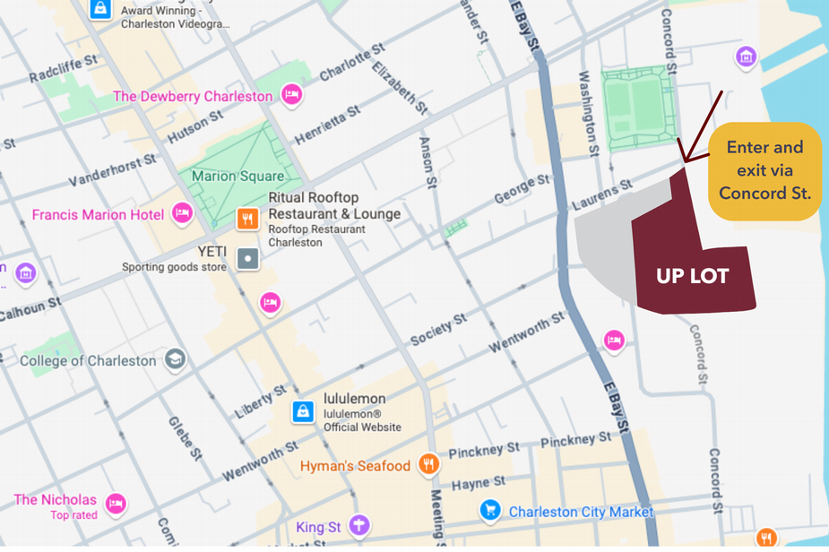 - UP Lot - Union Pier at Laurens and Concord streets, 32 Washington St. (view map)